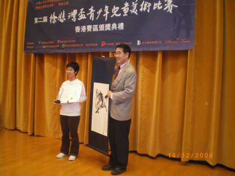 2008年12月12日,由中国人民大学徐悲鸿艺术研究院和香港金声艺术协会联合主办,香港英文中学联会、香港资助小学校长会协办的第二届香港“徐悲鸿杯”青少年儿童美术比赛优秀作品展开幕式暨颁奖仪式在香港中央图书馆大展厅举行。