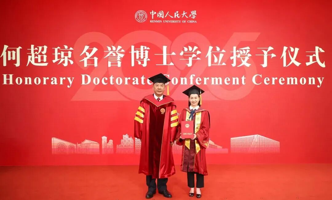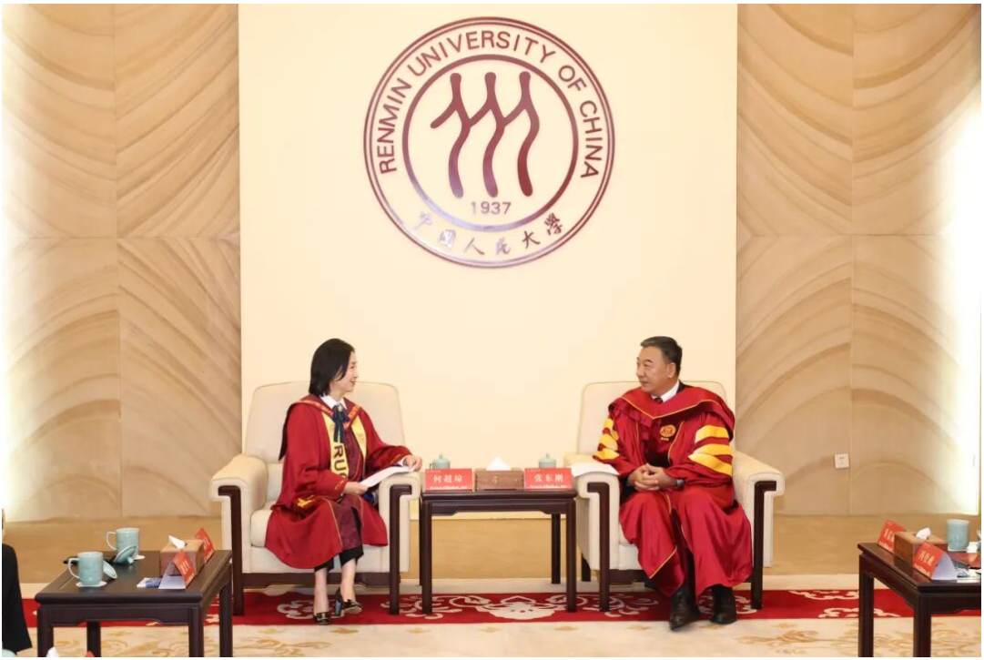 中国人民大学党委书记张东刚为何超琼女士颁发学位证书、拨穗。