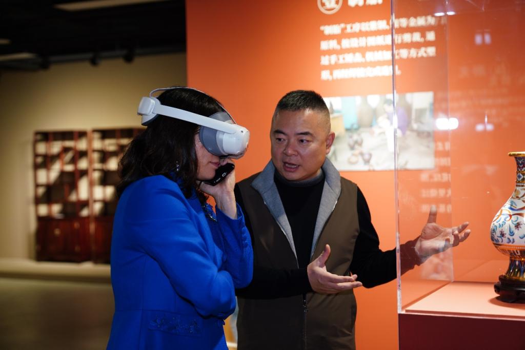,参观了“人民艺术·匠心传承”非物质文化遗产主题展。嘉宾们饶有兴致地观摩了非遗项目在当代的创新实践成果,以及非遗数字化保护与活态传承方面的最新研究进展,对学院师生在推动非遗现代化转型中所作出的积极探索给予了高度评价,认为这些成果生动彰显了传统技艺在当代的生命力,有效促进了非遗技艺的创造性转化与创新性发展。