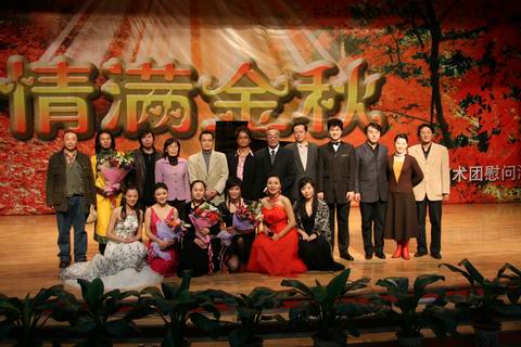 艺术团赴国家教育行政学院,为正在那里学习的全国28期高校中青年干部培训班、全国各县、市教育局长班、全国中小学校长培训班的学员们举行了一场以“情满金秋”为主题的慰问演出。
